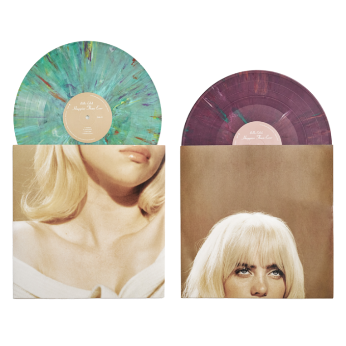 Zwei Jahre ist es her, dass Billie Eilish die Welt mit “Happier Than Ever“ beschenkt hat. Dieses Jubiläum wird nun mit einer ganz besonderen Auflage des Albums gefeiert: Die streng limitierte Sonderedition wurde komplett aus den farbigen Vinyl-Überresten der ersten Produktion von “Happier Than Ever” recycelt, was jede Platte zu einem Einzelstück mit individuellem Muster macht.