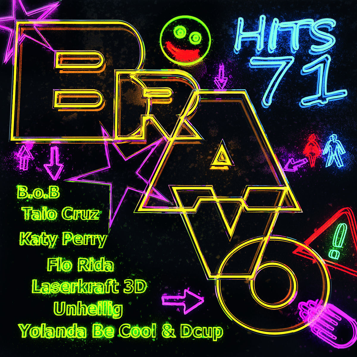 Ins farbenfrohe Neonröhren-Outfit hat sich die neue BRAVO Hits 71 geschmissen. Hier blinkt ein Hit nach dem nächsten: Hayley Williams von Paramore und Hip Hop König Bobby Ray Simmons aka B.O.B setzen mit '“Airplanes“ ihren weltweiten Siegeszug in den Charts fort. Flo Rida und David Guetta („Club Can’t Handle Me“) zeigen dem Dancefloor wie man kräftig feiert – während Taio Cruz sein '“Dynamite“ zündet. Ein Hit-Feuerwerk mit Rang und Namen: Katy Perry, Jason Derülo, Kylie Minogue, 30 Seconds To Mars – wer hier dabei ist, hat es sich verdient.