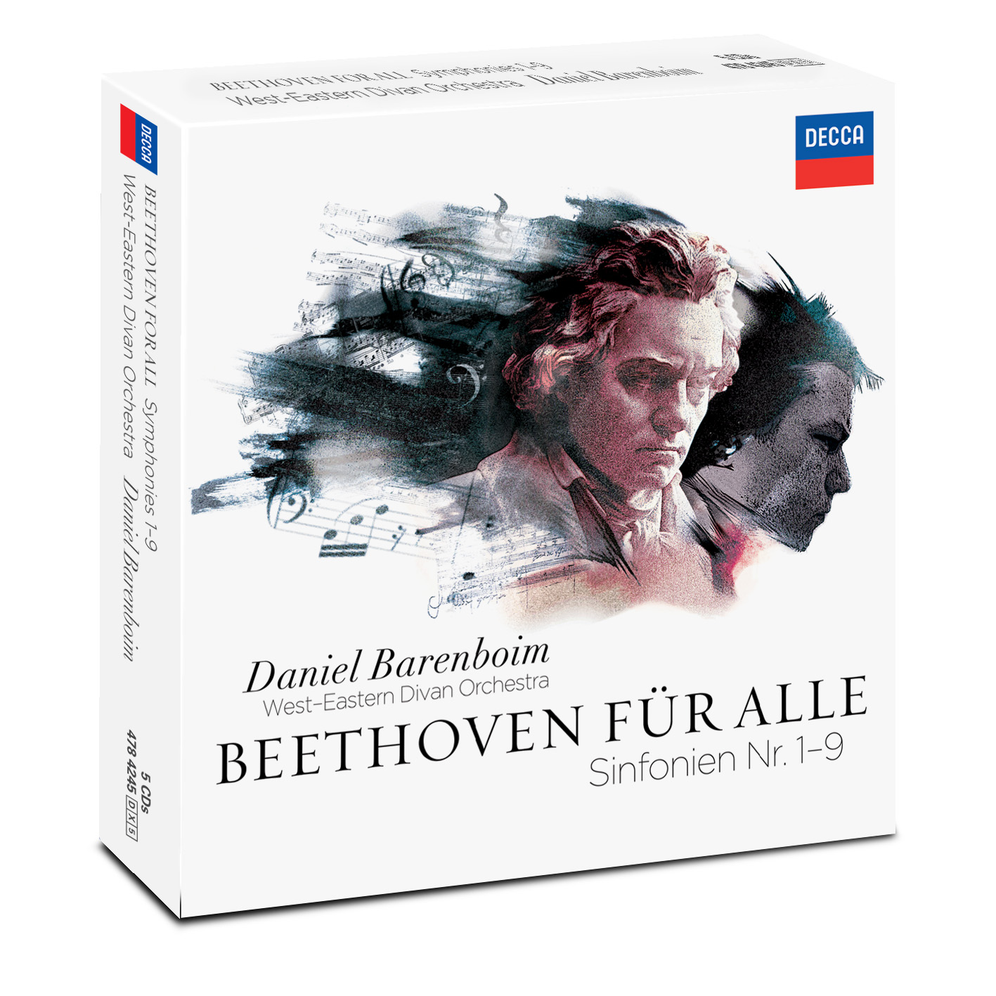 »Beethovens Musik ist universell, egal, wo in der Welt – sie spricht zu allen Menschen.« (Daniel Barenboim). Gerade die Neunte Sinfonie mit Schillers »Ode an die Freude« ist längst ein internationales Glaubensbekenntnis der Menschheit: Sie dient als Europa- und als Fußball-Hymne, sie wurde zur Vereinigung Deutschlands gespielt und erklingt überall dort, wo Menschen einander mit Respekt nahe kommen. Das Open-Air-Konzert mit der Neunten in der Berliner Waldbühne im Sommer 2011 war ein Fest für alle Menschen. Kein Werk scheint so perfekt zu sein für eine Welt im Umbruch wie dieses, gespielt von einem Orchester, das beim Musizieren immer auch die Hoffnung auf Freiheit und Frieden erklingen lässt. 2011 hat Barenboim mit dem Orchester alle Beethoven Sinfonien aufgenommen, die nun in einer 5 CD-Box erscheinen – Beethoven für alle.