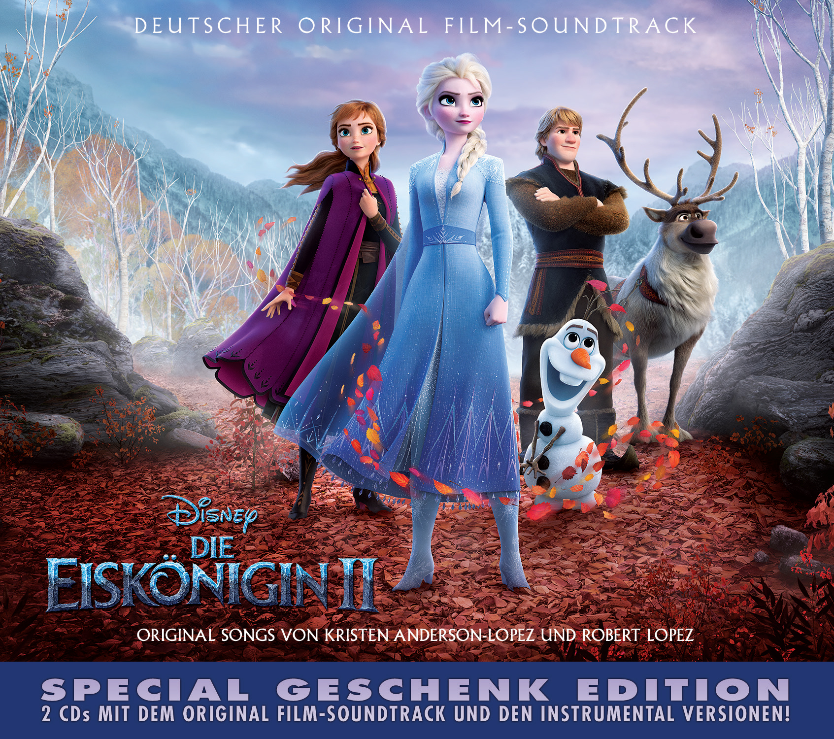Der deutschsprachige Soundtrack zum Film “Die Eiskönigin 2” mit 6 Songs der Oscar®- und Grammy® gekrönten Songwriter Kristen Anderson-Lopez und Robert Lopez mit den deutschen Originalstimmen aus dem Film. Den Score steuerte der Grammy nominierte Christophe Beck bei.