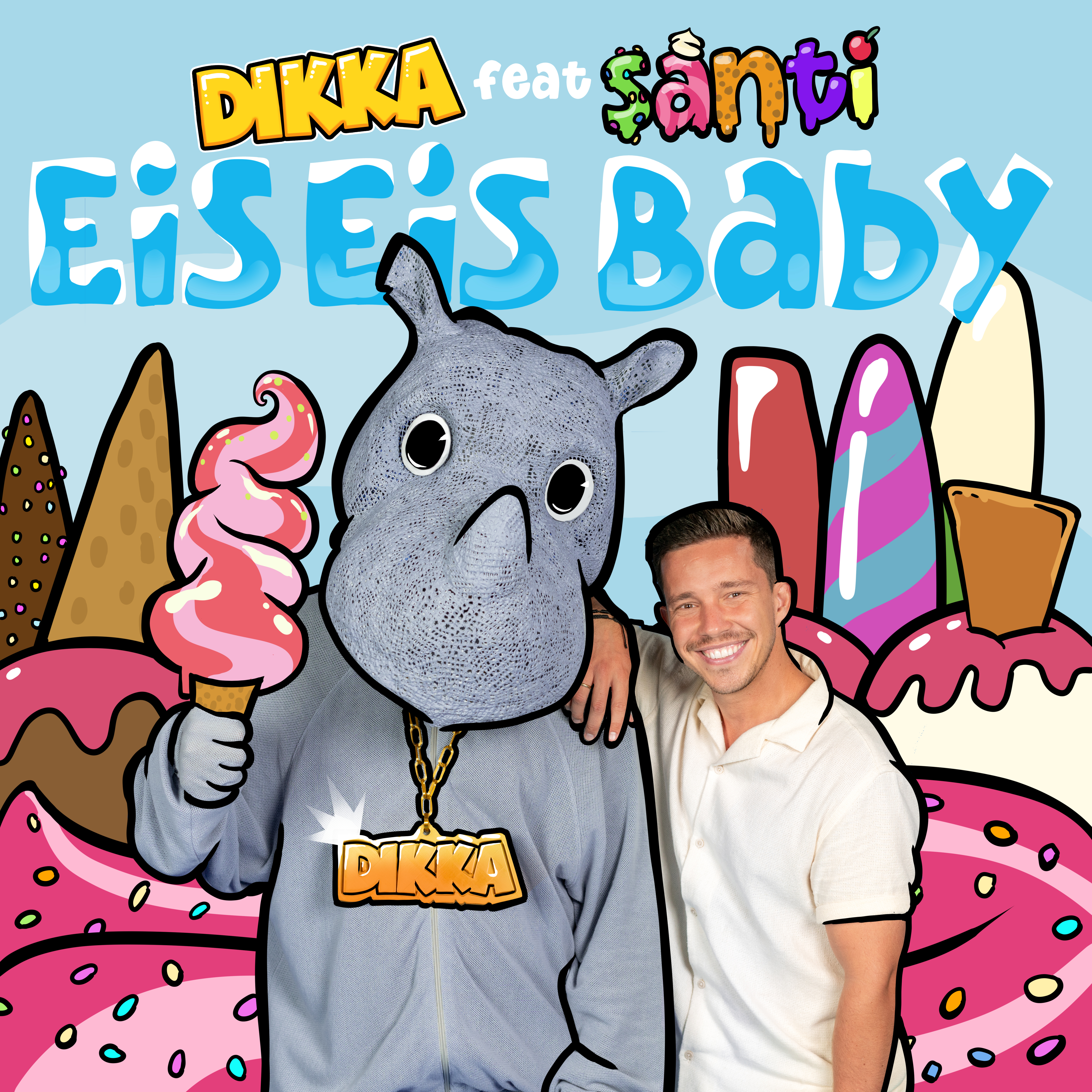 Zusammen mit Superstar und Nashornliebhaber Nico Santos aka. Santi veröffentlicht DIKKA am 22.07. seine neue Single “Eis Eis Baby” und setzt damit eine dikke fette Kirsche auf den Eisbecher!