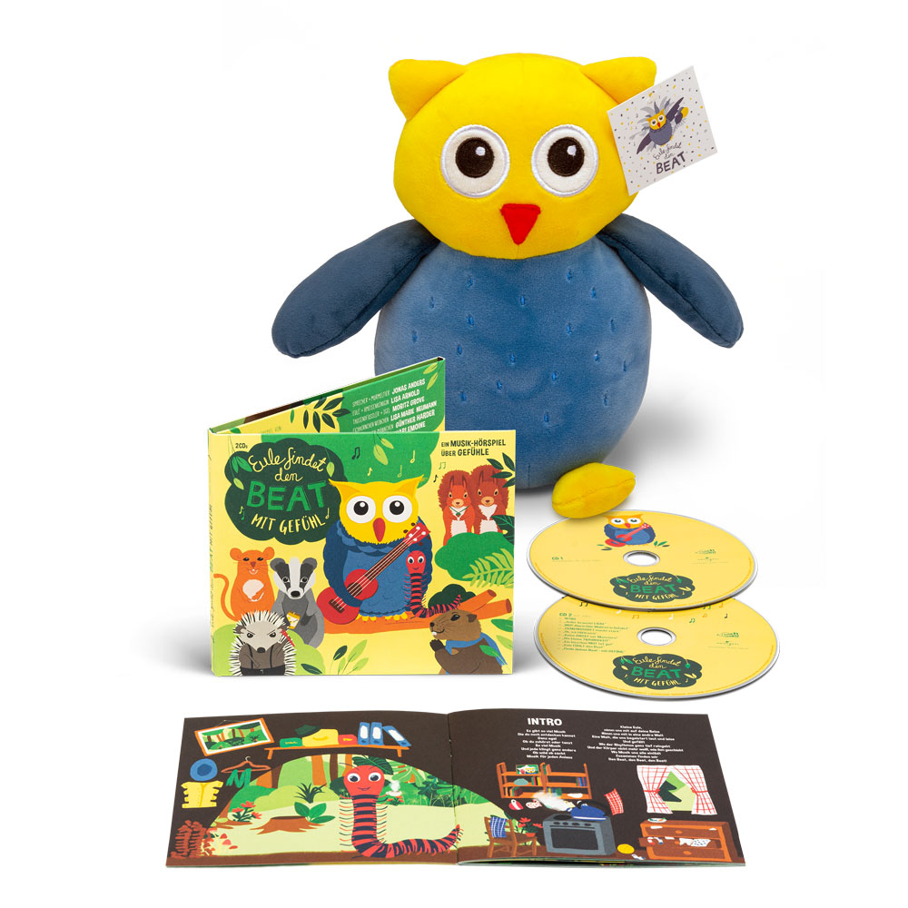 Das dritte Musik-Hörspiel der “Eule findet den Beat”-Reihe kann nun als Fan-Bundle auf 2CDs (CD 1: Musik-Hörspiel, CD 2: alle Lieder) mit einer kuschligen Plüsch-Eule erworben werden! Die 22cm große, weiche Eule-Plüschfigur und die Eule-Alben sind ein wunderbares Geschenk für alle musikbegeisterten Kinder!
