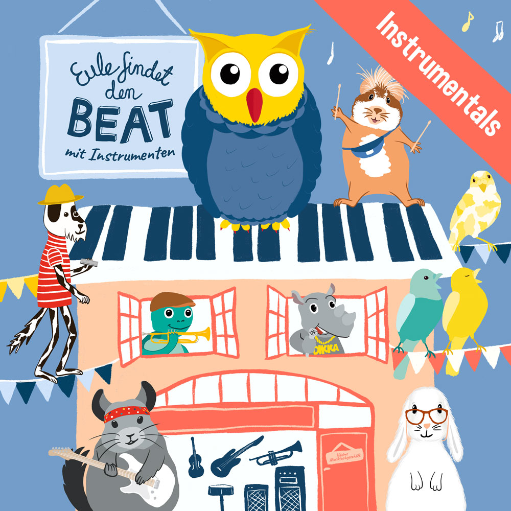 Alle 10 Songs aus dem neuen Eule Musik-Hörspiel “Eule findet den Beat – mit Instrumenten” in Instrumentalversionen zum Mitsingen und -spielen. Von gitarrenverzerrtem Rock und folkigen Mundharmonikamelodien über poppige Piano- und Geigen- und balkanische Trompetentöne bis zum “Finde deinen Beat”-Ohrwurm als Blockflötenfassung.