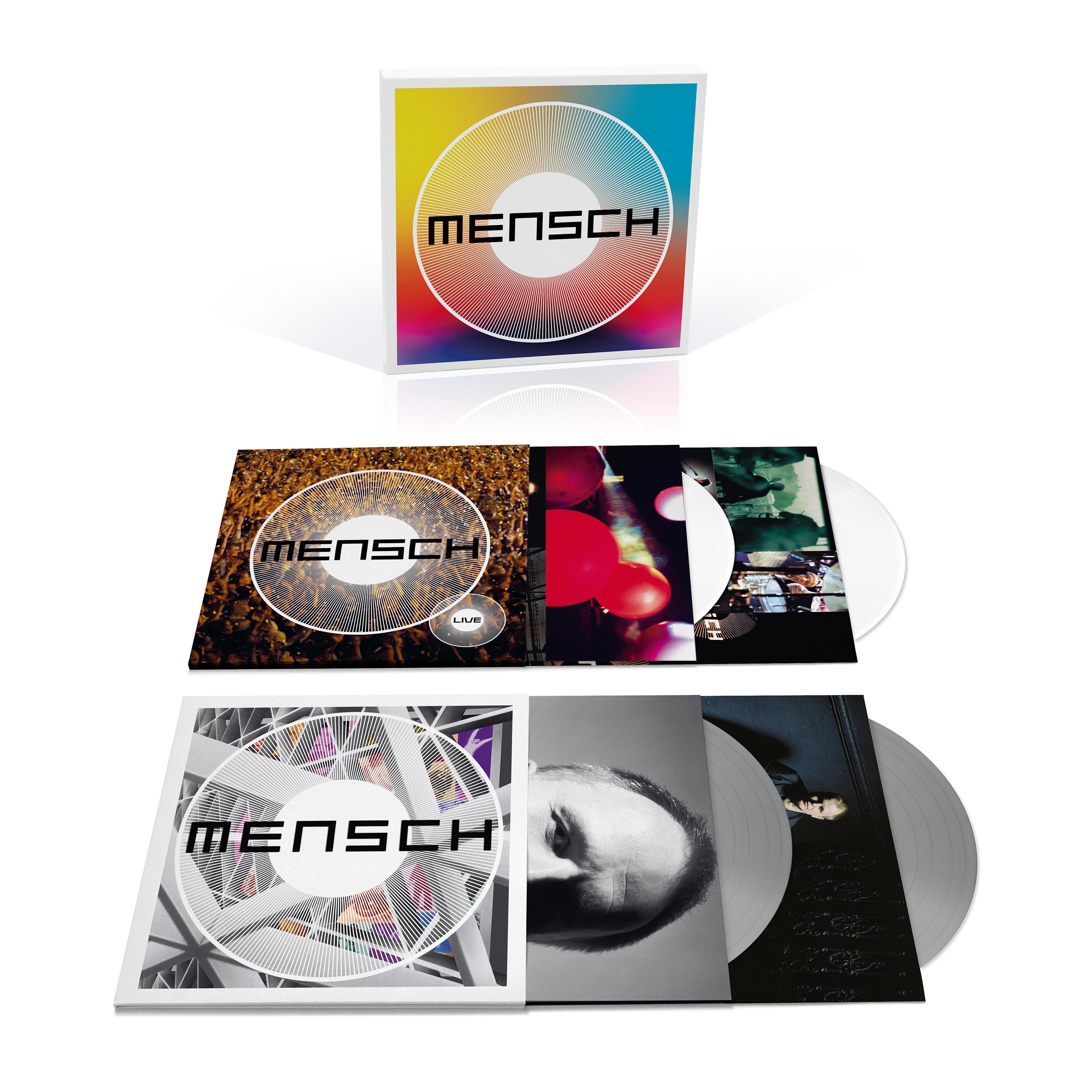 Die limitierte 4LP Spezial-Edition zum MENSCH-Jubiläum enthält das Studioalbum auf silberner Vinyl und das Live-Album (Konzertaufzeichnung Gelsenkirchen 2003) auf weißer Vinyl. Nur im Shop gibt es einen MENSCH-Button für die ersten 1000 Vorbesteller