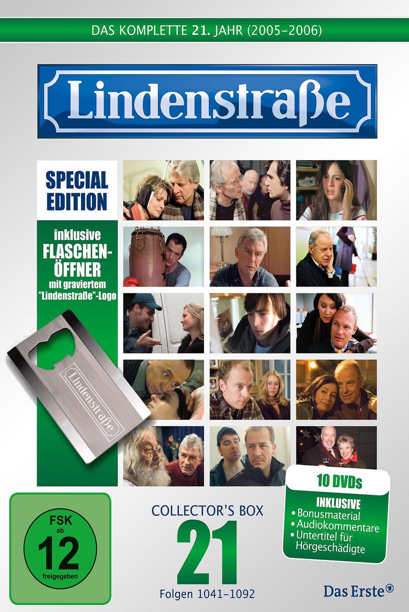 Die limitierte neue Lindenstraßen-Box mit Folge 1041 bis 1092 aus dem 21. Lindenstraßen-Jahr und viel Bonusmaterial auf 10 DVDs – sowie exklusivem Flaschenöffner als Extra!