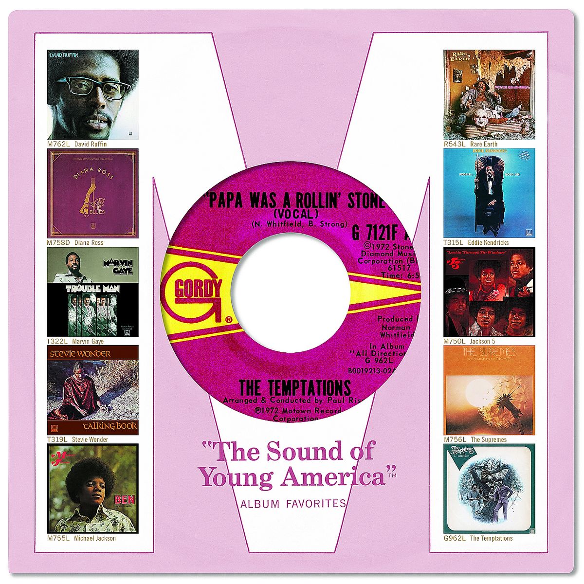 In der Sonne der Film-Metropole sonnten sich Diana Ross (als singende Schauspielerin), Marvin Gaye (als Filmkomponist) und Michael Jackson (der als Interpret eines Film-Titelsongs Platz 1 der US-Charts erreichte). Das Boxset stellt Hits wie Stevie Wonders “Superstition” und das Solo-Debüt von Jermaine Jackson neben rare Titel von Puzzle, Wolfe, Martin & Finley, Odyssey wie auch unveröffentlichte Tracks von Valerie Simpson (“Genius”), G.C. Cameron & Willie Hutch und dem legendären Bassisten der Funk Brothers, Bob Bobbitt, dessen Funk-Soul-Sublabel Gospel Truth damals dem Rotstift zum Opfer fiel. Die Temptations, Four Tops und Smokey Robinson & the Miracles nahmen ebenfalls 1972 ihren Abschied vom Motown-Label. Verpackt im 7″-Single-Format, enthält die letzte Folge der “Motown Complete Singles” ein 130-seitiges gebundenes Buch mit einem Essay von Abdul “Duke” Fakir, dem letzten lebenden Mitglied der Original-Besetzung von Four Tops. Weitere Liner-Notes stammen von der Detroiter Reporterin Susan Whitall. Hinzu kommen detaillierte Track-by-Track-Kommentare von Keith Hughes und Harry Weinger (die Produzenten der “Complete Motown Singles”-Serie), weitere vom Autoren und Musikjournalisten Bill Dahl und natürlich dutzende seltene, ungesehene Fotos und Abbildungen. Auch die letzte Ausgabe der “Motown Complete Singles”-Serie enthält eine Vinyl-Single, diesmal eine Replik der mehrfach Grammy-prämierten Motown−7″ “Papa Was A Rollin’ Stone” der Temptations.