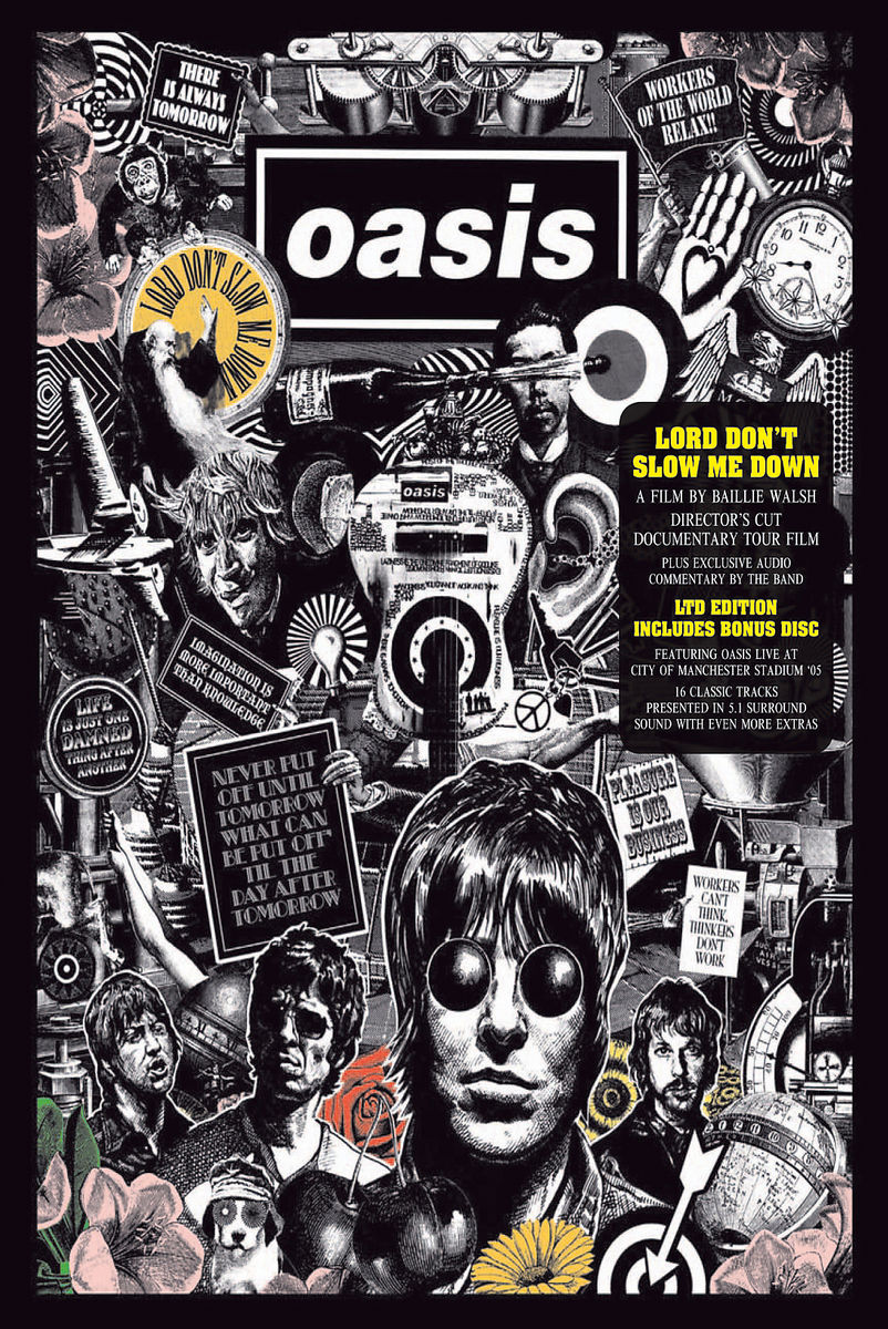Die meinen das ernst. Diese Arroganz ist nicht gespielt. Noel Gallagher ist wirklich ein Großkotz – wenn auch ein unterhaltsamer. Sein Bruder Liam ist tatsächlich der letzte Vollproll. Und: Oasis sind immer noch die größte Band der Welt. Das sind die Einsichten, die diese wunderschön gestaltete DVD-Box mit sich bringt – und man kann davon ausgehen, dass es genau das ist, was Oasis beweisen wollten. Neben dem Mitschnitt des “Homecoming-Gigs” in Manchester ist das Herzstück die neunzigminütige Dokumentation “Lord Don’t Slow Me Down”, die unter Regie von Baillie Walsh während der Welttour zum letzten Album entstand. Eine Tour, bei der Oasis 26 Länder bereisten und vor über zwei Millionen Zuschauern auftraten. Der Film, der überwiegend in einer bandtypischen Schwarz-Weiß-Ästhetik gehalten ist, zeigt Oasis, wie sie vielleicht wirklich sind. Liam wird zum Beispiel in einem Interview gefragt, wie es sich anfühle gleich vor 40.000 Leuten zu spielen. Die Antwort: “It feels right, you know.” Pause. Dann: “Nothing special about it.” Ebenso amüsant ist das permanente Brüder-Bashing. So erklärt Noel sehr überzeugend, warum Kasabian-Sänger Tom Meigahn Charisma hat – und sein Bruder eben nicht. Walsh hat ein gutes Auge für solch pointierte Szenen, die einem mehr von der Band erzählen, als das jede Biographie könnte. Noel selbst fragte trotzdem am Ende der Dreharbeiten: “Warum einen Film über uns? Du bist neun Jahre zu spät, um uns dabei zu erwischen, wie wir Schampus aus Cowboystiefeln saufen.” Und Walsh antwortete, dass er bei jedem Stopp überall auf der Welt genau das die Fans gefragt habe. Und die sagten: “What d’you mean, why? It’s fucking Oasis, innit?”