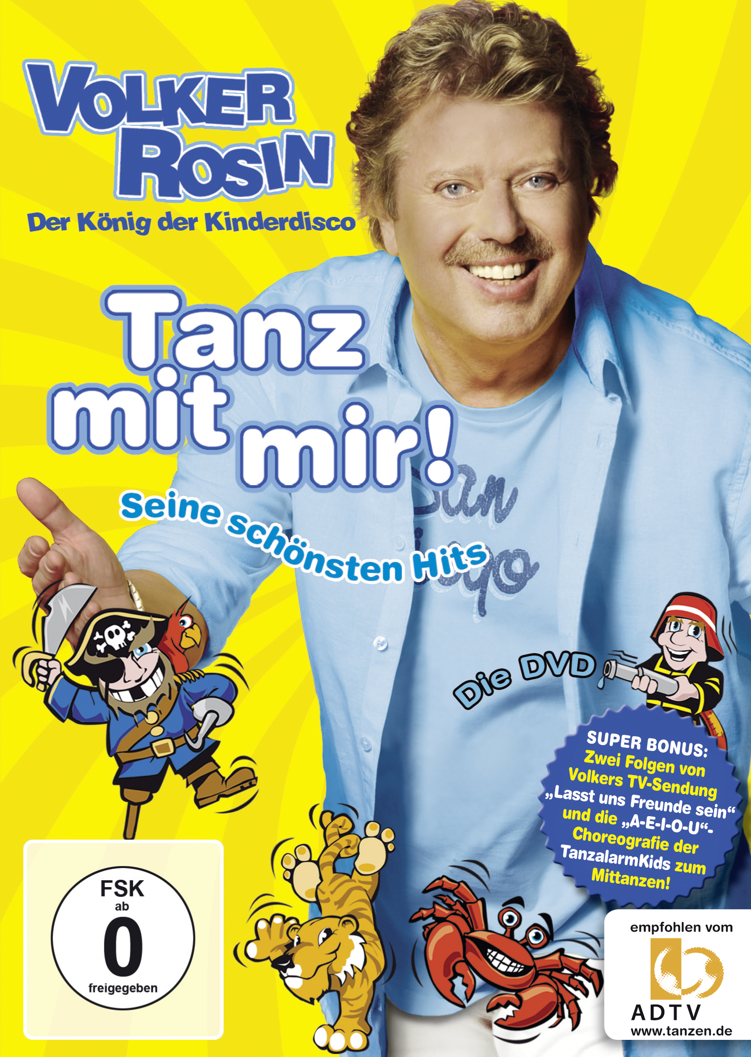 Volker Rosin lädt alle Kinder wieder zum fröhlichen Mittanzen ein. Auf der DVD zur gleichnamigen CD präsentiert er neue und bewährte Hits für Kinder ab 3 Jahren. Die 20 Clips aus der Hitküche des diplomierten Sozialpädagogen erweisen sich sofort als Ohrwürmer, zaubern Superlaune her und bringen selbst Bewegungsmuffel in Schwung. Die modernen, druckvollen Rhythmen der potenziellen Dauerbrenner „Krabben Samba“, “Hurra Hurra – wir tanzen” oder „Piratenkapitän“ begeistern beim ersten Hören. Auch „Erdmännchen Eduard“ oder „Die Weltraummaus“ (hier in der Version mit den jungen Zillertalern zu sehen) gehen sofort in Ohr und Beine. Natürlich darf auch der Titelsong der KiKA-Erfolgsserie „Tanzalarm“ nicht fehlen, zu dem die TanzalarmKids im Bonusmenu auch ihre Choreografie vorstellen. Bei Volker Rosin sind eben alle “Immer in Bewegung”!